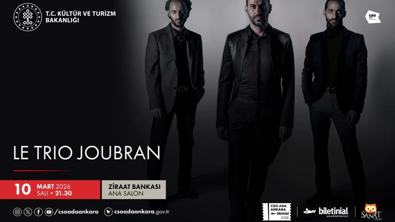 Ramazan’ın manevi havasına uygun olarak planlanan Türkiye turnesinde Le Trio Joubran; 9 Mart’ta Gaziantep Şahinbey Kongre ve Kültür Merkezi’nde, 10 Mart’ta Ankara CSO Ada Ankara Ziraat Bankası Ana Salon’da ve 11 Mart’ta Konya Selçuklu Kongre Merkezi Anadolu Sahne’de saat 21.30’da dinleyiciyle buluşacak.